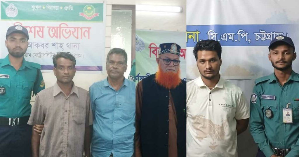 গ্রেফতারকৃতদের মধ্যে রয়েছেন চকবাজার থানার মোঃ ইমন (২৬), বাকলিয়া থানার মোঃ জসিম উদ্দিন সিকদার (৪৫), মোঃ রিদুয়ানুল ইসলাম (২৮), মোঃ নুর কবির (৫৪), সদরঘাট থানার মোঃ শুক্কুর মিয়া (২৫), পাঁচলাইশ মডেল থানার মোঃ মাহি সায়েদ (২৫), চান্দগাঁও থানার সুমন দাশ (৩৯), বায়েজিদ বোস্তামী থানার মোঃ সাইমন (২৫), মোঃ শাহীন (২৬), হালিশহর থানার মোঃ ইমরান (৩৩), পাহাড়তলী থানার মোহাম্মদ আজাদ বিশ্বাস (২৫), মোহাম্মদ নাসির বিশ্বাস (৪৫), আকবরশাহ থানার মৃদুল চন্দ্র দে (৫৪), রুপম দে (৪২), ডবলমুরিং থানার মীর মোহাম্মদ আহনাফ আরেফিন (২০), ইপিজেড থানার জসিম উদ্দিন (৪০), কর্ণফুলী থানার ওলামালীগের সভাপতি ডাঃ মাওলানা ইউনুস অহিদ (৬৫), কোতোয়ালী থানার চট্টগ্রাম মহানগরীর উপ-অর্থ বিষয়ক সম্পাদক মোঃ ইমরান আলী মাসুদ (৩৩) এবং চট্টগ্রাম মহানগরীর সাবেক গণশিক্ষা বিষয়ক সম্পাদক মোঃ মনছুর আলী (৪৭)।
