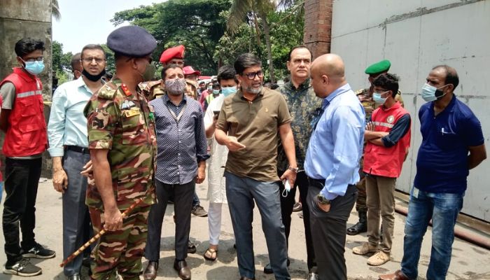 এদিকে আজ রোববার সকালে বিজিএমইএ’র সহ-সভাপতি রাকিবুল আলম চৌধুরী, পরিচালক তানভীর হাবিব, এ.এম. শফিউল করিম (খোকন) সহ বিজিএমইএ’র কর্মকর্তাবৃন্দ দুর্ঘটনাস্থল সরেজমিনে পরিদর্শনপূর্বক উদ্ধার কাজে নিয়োজিত ফায়ার সার্ভিসসহ আইনশৃঙ্খলা রক্ষাকারী বাহিনীর সদস্যদের সাথে মতবিনিময় করেন।