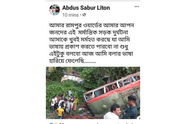 তিনি গতকাল রাতে এক বিবৃতিতে বলেন, ‘আমার রামপুর ওয়ার্ডে আমার আপনজনদের এই মর্মান্তিক সড়ক দুর্ঘটনায় আমাকে খুব মর্মাহত করেছে। যা আমি ভাষায় প্রকাশ করতে পারব না।’ তিনি শোকাহত পরিবারের প্রতি সমবেদনা জানান এবং আহতদের চিকিৎসা খোঁজ-খবর নেন ও সুস্থতা কামনা করেন। এছাড়া তিনি তাঁর ফেইবুক স্ট্যাটাসে দুঃখ প্রকাশ করে।