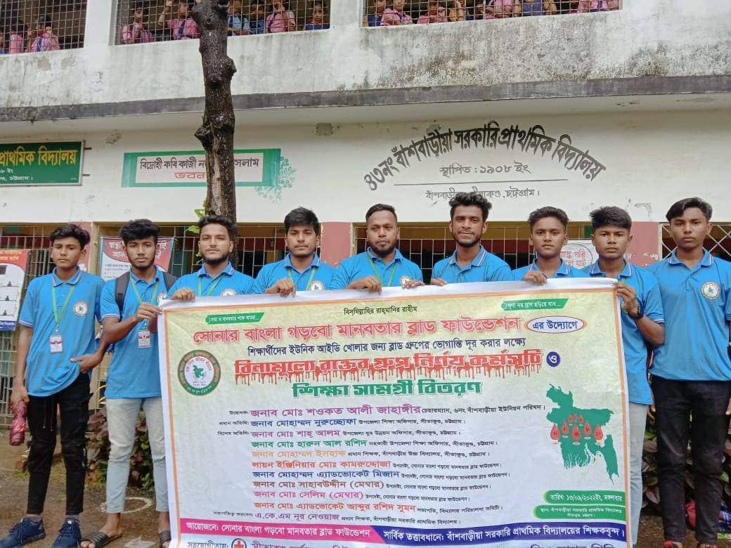 ‘সত্য ও মানবতার পক্ষে আমরা, ঘৃণা নয় ঘ্রাণ ছড়িয়ে যাবো’— এই প্রতিপাদ্যকে সামনে রেখে সেচ্ছাসেবী সংগঠন ‘মানবতার ব্লাড ফাউন্ডেশন’র উদ্যোগে বাঁশবাড়িয়া সরকারি প্রাথমিক বিদ্যালয়ে ফ্রি ব্লাড গ্রুপিং ক্যাম্পেইন এবং শিক্ষার্থীদের মাঝে শিক্ষাসামগ্রী বিতরণ করা হয়েছে।