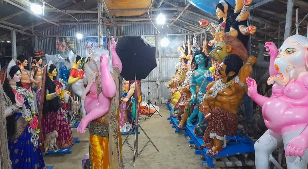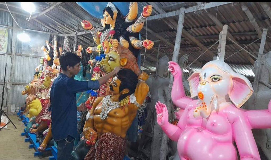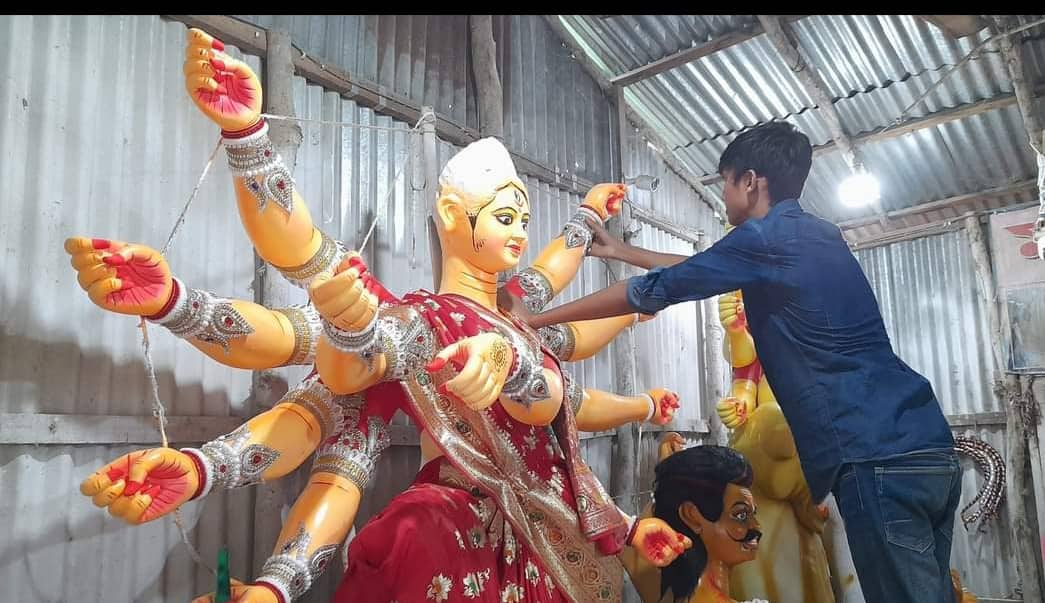 সনাতন ধর্মালম্বীদের বৃহৎ ধর্মীয় অনুষ্ঠান দুর্গোৎসব নিয়ে প্রতিটি পাড়া-মহল্লা চলছে সাঁজ-সাঁজ রব। পূজার আনন্দকে ভাগাভাগি করে নিতে পুজারী থেকে শুরু করে কর্মব্যস্ত সময় পার করছে দোকানিসহ প্রতিমা শিল্পীরা। আলোক সজ্জার সাথে মন্দিরে-মন্দিরে প্রতিমা শিল্পীর রঙ তুলির আচড়ে যেন জীবন্ত হয়ে উঠছে সু-দর্শন প্রতিমাগুলো। সব মিলিয়ে প্রতিটি এলাকাজুড়ে নেমে এসেছে মহাআনন্দের ছোয়া। তবে এক্ষেত্রে সকল আনন্দকে সর্বোত্তম জায়গায় এগিয়ে নিতে সর্বশেষ পরিশ্রম মূলে রয়েছে প্রতিমা তৈরির শিল্পীরা।