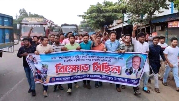ঢাকা বিশ্ববিদ্যালয় ও সুপ্রিম কোর্ট প্রাঙ্গণে ছাত্রদল নেতৃবৃন্দের ওপর ছাত্রলীগের হামলার প্রতিবাদে কেন্দ্রীয় কর্মসূচির অংশ হিসেবে বিক্ষোভ মিছিল করেছে সীতাকুণ্ড উপজেলা ছাত্রদল।