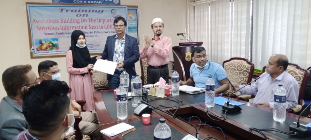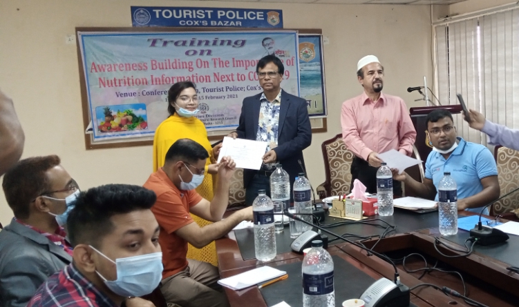 সৈকত তীরে ট্যুরিস্ট পুলিশ কক্সবাজার জেলা কার্যালয়ের হল রুমে ১২ ফেব্রুয়ারি হতে ১৫ ফেব্রুয়ারি ৪ দিনব্যাপী কর্মশালায় বাংলাদেশ কৃষি গবেষণা কাউন্সিল সদস্য, পরিচালক ও পুষ্টি বিজ্ঞানী ড. মো. মনিরুল ইসলাম বলেন, শক্তি ও তাপ উৎপাদক, আমিষ জাতীয় ও রোগ প্রতিরোধ ক্ষমতা সৃষ্টিকারি-এ তিন ধরণের খাবার একজন মানুষের দৈনিক গ্রহণ করা দরকার। সুস্থ থাকতে দৈনিক ১০০ গ্রাম শাক, ২০০ গ্রাম সবজি ও ১০০ গ্রাম ফল খেতে হবে। পুষ্টিকর খাবার খেতে অতি দামী খাবারের দরকার পড়ে না। সাধ্যের মধ্যে পাওয়া শাক-সবজির অনেকগুলোতে পুষ্টির আধার থাকে।
