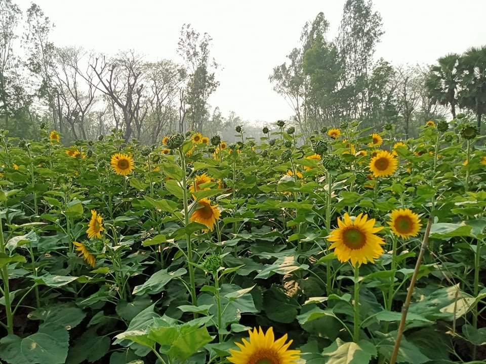 রোববার (২০ মার্চ) সরেজমিনে দেখা গেছে, সূর্যমুখী বাগানের প্রায়ই গাছে হলুদ ফুল মুখ মেলেছে। বাকিগুলো এখনো সবুজ কলি।