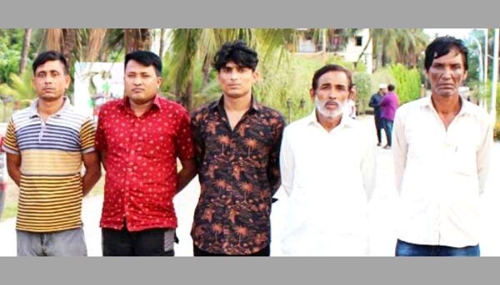 গ্রেফতাররা হলেন- বাঁশখালী উপজেলার ছনুয়ার মোজাফফর আহমদের ছেলে মো. ইসমাইল (৩২) ও শফিউল আলম (৩৭), কক্সবাজারের পেকুয়া থানার রাজাখালীর সেকান্দার আলীর ছেলে রিয়াজ খান রাজু (৪১), বাঁশখালীর ছনুয়ার মৃত চান মিয়ার ছেলে মো. হোসেন (৬০) ও একই উপজেলার পশ্চিম সেলবনের মৃত সৈয়দ আহম্মদের ছেলে মো. ইউনুছ মাঝি (৫৬)।