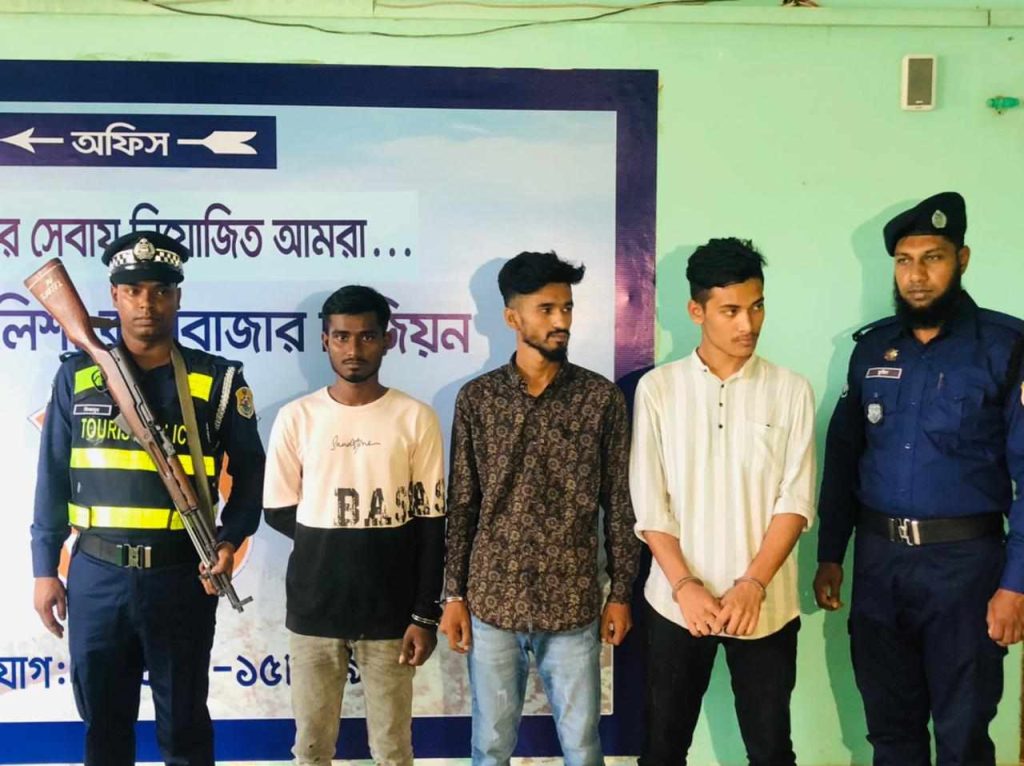 গ্রেফতাররা হলেন— কক্সবাজার শহরের ঝাউতলা এলাকার আবুল ফয়েজের ছেলে মেহেদী হাসান বাবু (১৬), মো. ইউসুফের ছেলে আবির হোসেন সান (২৩), মনির হোসেনের ছেলে মো. আবির (১৯), সিরাজুল ইসলামের ছেলে মোসাইদুল ইসলাম সামাদ (১৮)।
