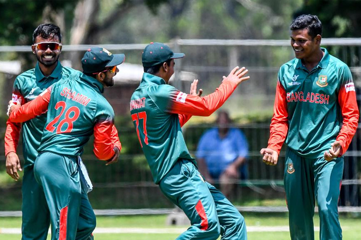 দলের পক্ষে দুই অঙ্কের রানের দেখা পেয়েছেন মাত্র ৩ জন। বাংলাদেশের পক্ষে রাকিবুল চারটি, শরিফুল ইসলাম ও তানজিম হোসেন সাকিব দু’টি এবং শামিম হোসেন ও মৃত্যঞ্জয় চৌধুরী একটি করে উইকেট শিকার করেন।