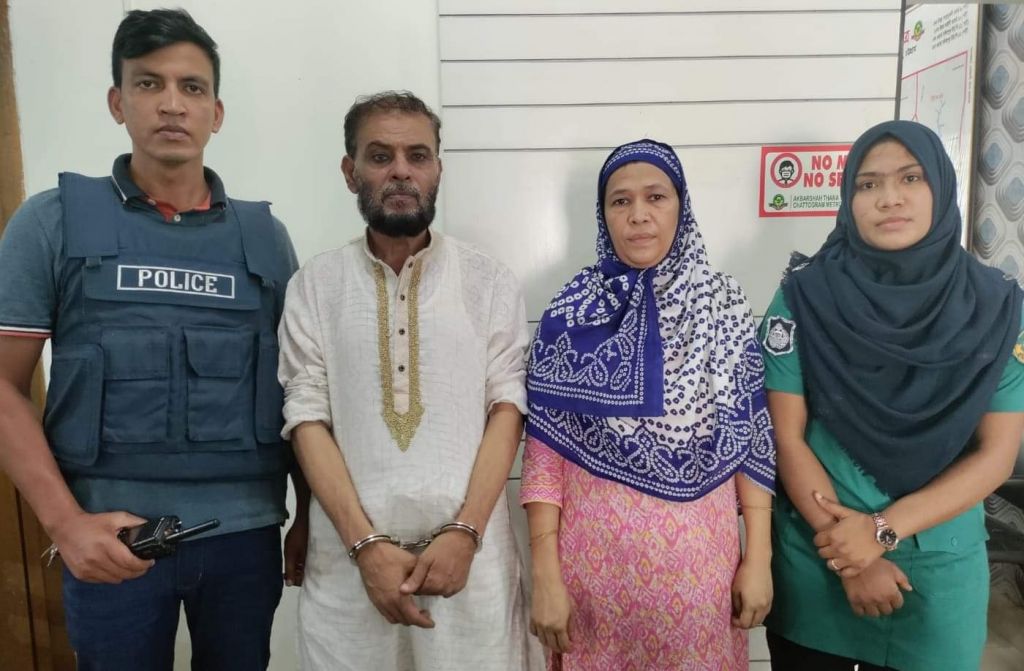 গ্রেফতার দম্পতি, আকবরশাহ থানার পূর্ব ফিরোজশাহ্ কলোনী রেজিস্টার অফিস মসজিদ মার্কেট এলাকার মুজিব খানের ছেলে মো. মুহিব খান (৬০) ও তার স্ত্রী দিলশাদ বেগম (৪০)।
