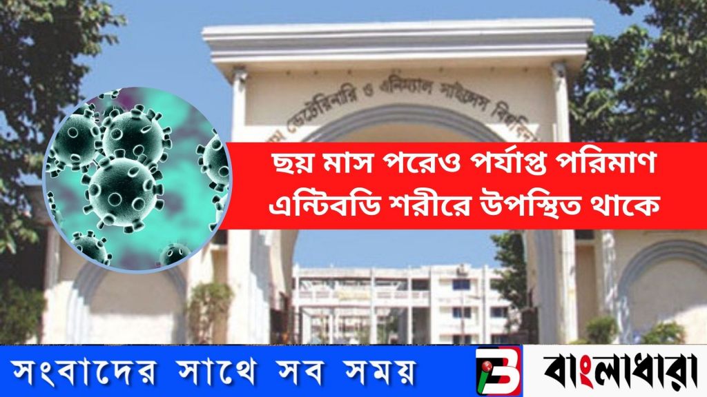 কোভিড-১৯ ভ্যাকসিনের ২য় ডোজ নেওয়ার ছয় মাস পরেও কোভিড-১৯ থেকে সুরক্ষা দেওয়ার মতো পর্যাপ্ত পরিমাণ এন্টিবডি শরীরে উপস্থিত থাকে বলে একটি গবেষণায় প্রমাণ করেছে চট্টগ্রাম ভেটেরিনারি ও এনিম্যাল সাইন্সেস বিশ্ববিদ্যালয় (সিভাসু) এর একদল গবেষক।
