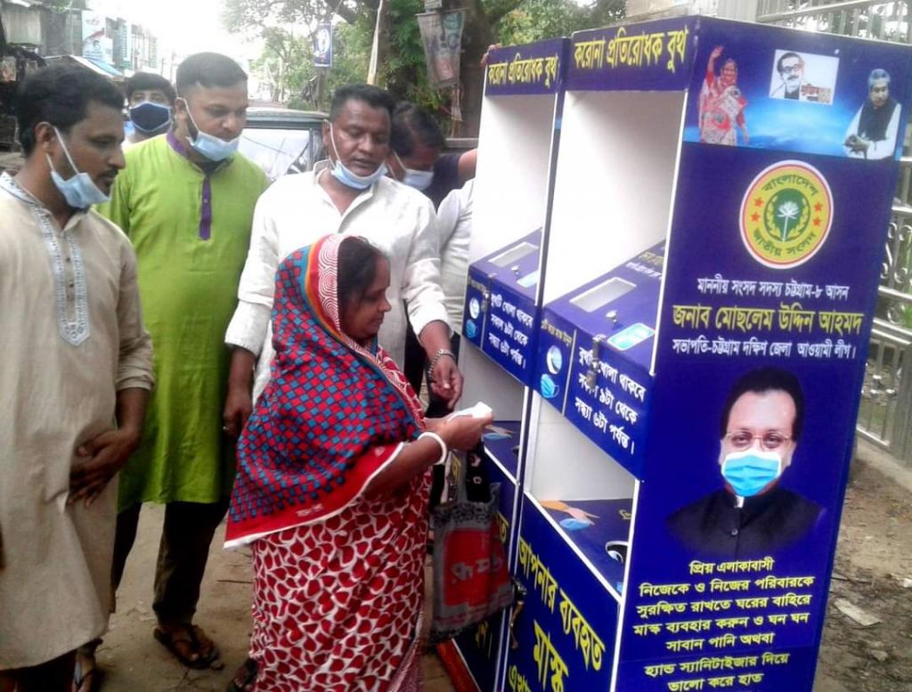 এ করোনা বুথে পথচারিরা বিনামূল্যে হ্যান্ড স্যানিটাইজার ও মাস্ক পাবেন । এছাড়া ব্যবহৃত মাস্ক যত্রতত্র না ফেলে বুথে স্থাপিত ডাস্টবক্সে ফেলার সুবিধা রয়েছে।