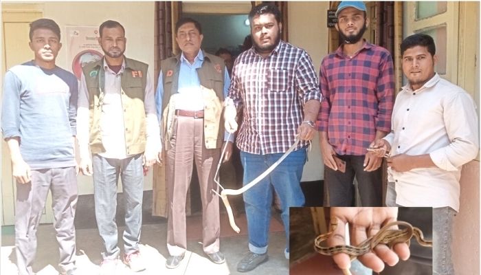 চট্টগ্রামের হাটহাজারী স্ন্যাক রেসকিউ টিম (এসআরটিবিডি) সদস্যদের সহযোগিতায় স্থানীয় বনবিভাগ কর্মীর বিলুপ্ত প্রজাতির ৩ ফুট দৈর্ঘের পদ্ম গোখরা সাপ এবং ডিমসহ ২টি দুধরাজ সাপ উদ্ধার করেছে।