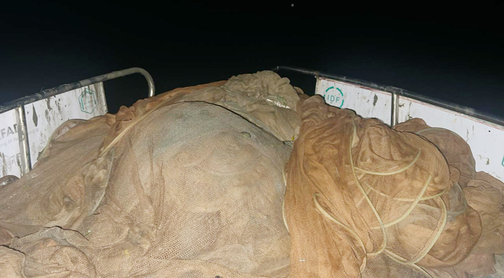 নিজস্ব প্রতিবেদক » হালদা নদীতে অভিযান চালিয়ে ৪ হাজার মিটার ঘেরা জাল জব্দ করেছে ভ্রাম্যমাণ আদালত। মঙ্গলবার (৬ ফেব্রুয়ারি) দিবাগত রাত সাড়ে ১২টা থেকে সাড়ে ৩টা পর্যন্ত নির্বাহী ম্যাজিস্ট্রেট ও উপজেলা নির্বাহী কর্মকর্তা (ইউএনও) এবিএম মশিউজ্জামানের নেতৃত্বে এ অভিযান চালানো হয়।