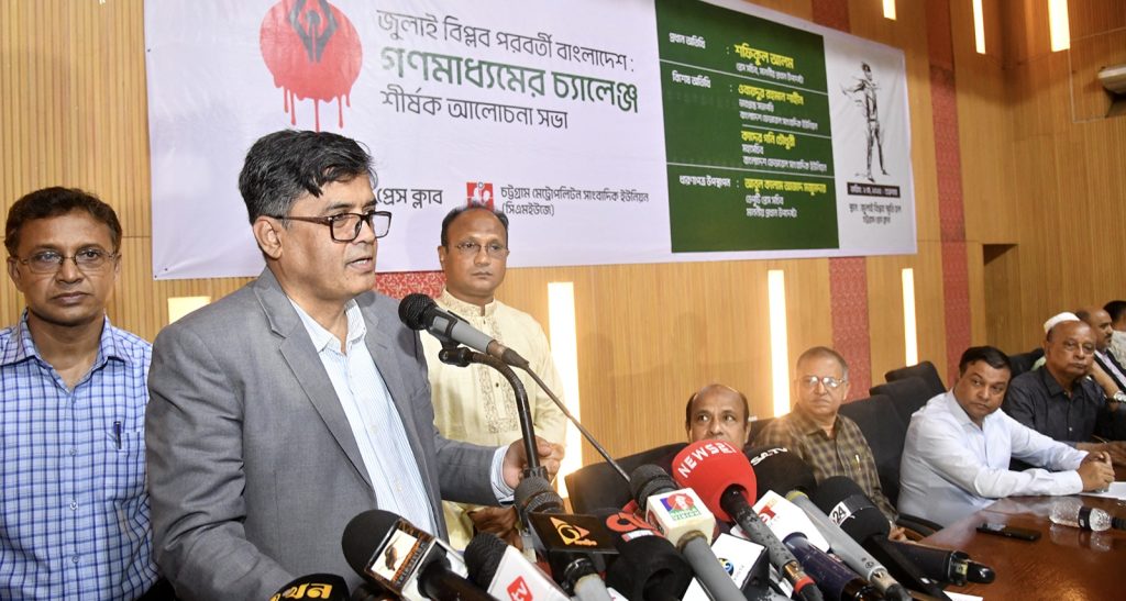 শুক্রবার (২ মে) সকালে ‘জুলাই বিপ্লব পরবর্তী বাংলাদেশ: গণমাধ্যমের চ্যালেঞ্জ’ শীর্ষক আলোচনা সভায় প্রধান অতিথির বক্তব্যে তিনি এ মন্তব্য করেন। অনুষ্ঠানটি চট্টগ্রাম প্রেস ক্লাব ও চট্টগ্রাম মেট্রোপলিটন সাংবাদিক ইউনিয়ন যৌথভাবে আয়োজন করে।