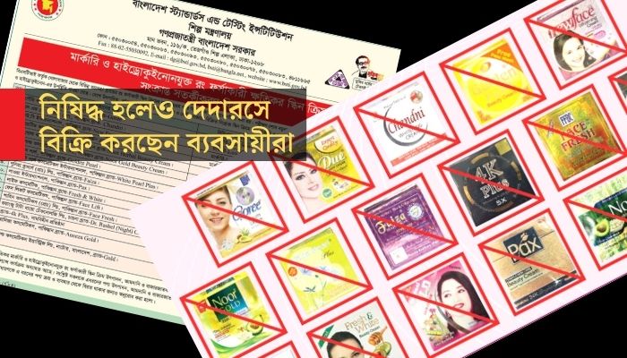 বিজ্ঞপ্তিতে আরও জানানো হয়, বিএসটিআই কর্তৃক খোলাবাজার থেকে বিভিন্ন ব্রান্ডের রং ফর্সাকারী স্কিন ক্রিমের নমুনা সংগ্রহ করে বিএসটিআই’র ল্যাবে পরীক্ষা করা হয়। পরীক্ষা শেষে নমুনায় মাত্রাতিরিক্ত মানব স্বাস্থ্যের জন্য ক্ষতিকর মার্কারি (পারদ) ও হাইড্রোকুইনোনের উপস্থিতি পাওয়া গেছে। তাই এসব পণ্য উৎপাদন, আমদানি ও বাজারজাতকরণ থেকে বিরত ও ক্রয় থেকে সতর্ক থাকার জন্য ভোক্তাদের অনুরোধ করা হয়।