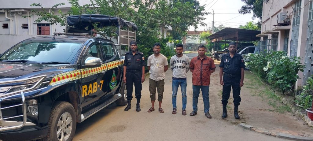 গ্রেফতাররা হলেন- কুমিল্লা জেলার চৌদ্দগ্রাম থানার কালিকাপুর গ্রামের আইয়ুবের পুত্র মো. সাইফুল ইসলাম (৩০) এবং মো. মাদু’র পুত্র মো. হাসান (২০)। অন্যজন হলেন, একই থানার নোয়াপুর গ্রামের হয রহমানের পুত্র সাহাবুদ্দিন (৪২)।