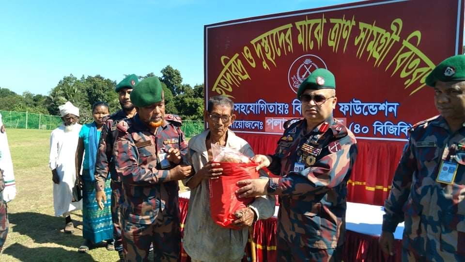 বৃহস্পতিবার (১৮ নভেম্বর) সকাল ১১টার দিকে পলাশপুর জোন (৪০ বিজিবি) এর জোন অধিনায়ক লে: কর্ণেল সৈয়দ সালাহউদ্দিন নয়ন, পিএসসি, প্রধান অতিথি হিসাবে উপস্হিত হয়ে স্থানীয় পাহাড়ি-বাঙ্গালি ৬০ জন গরীব দুস্থ ও অসহায় শীতার্তদের মধ্যে কম্বল, লুঙ্গি, স্যান্ডেল, বিস্কুট এবং ব্রেড বিতরণ করেন।
