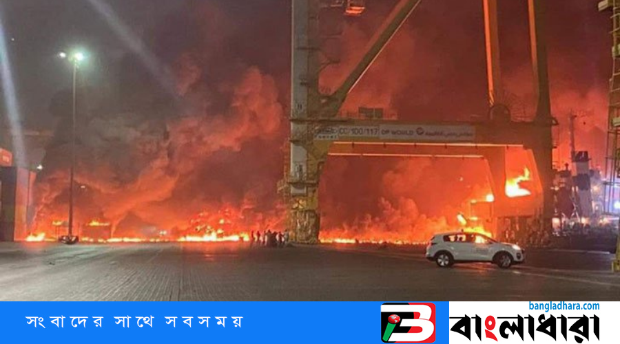 হঠাৎ ভয়ানক বিস্ফোরণে কেঁপে ওঠল সংযুক্ত আরব আমিরাতের বাণিজ্যিক শহর দুবাই। স্থানীয় সময় বুধবার গভীর রাতে আচমকা এই বিস্ফোরণ ঘটে। ঘটনার ভিডিও মুহূর্তের মধ্যে ভাইরাল হয় সামাজিক যোগাযোগমাধ্যমে। পরে জানা যায়, দুবাইয়ের গুরুত্বপূর্ণ জেবেল আলি বন্দরে নোঙর থাকা এক মালবাহী জাহাজে অগ্নিকাণ্ড থেকে এই বিপত্তি। সংবাদমাধ্যম আলজাজিরা এ খবর জানিয়েছে।