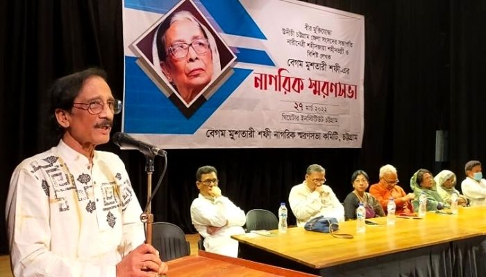 রোববার (২৭ মার্চ) সন্ধ্যায় চট্টগ্রাম নগরীর থিয়েটার ইনস্টিটিউট মিলনায়তনে ‘বেগম মুশতারী শফী নাগরিক স্মরণসভা পরিষদের’ উদ্যোগে আয়োজিত এই স্মরণসভায় সভাপতিত্ব করেন একুশে পদকপ্রাপ্ত কবি ও সাংবাদিক আবুল মোমেন।