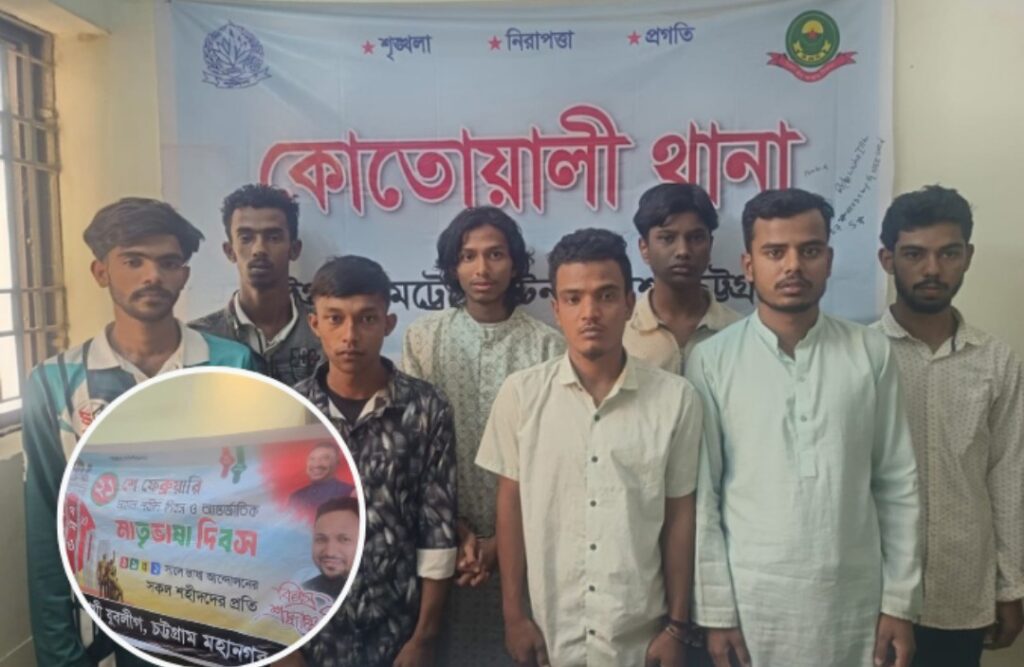 চট্টগ্রাম নগরীর কোতোয়ালী থানাধীন রাইফেল ক্লাবের সামনে ঝটিকা মিছিলের সময় নিষিদ্ধ ঘোষিত ছাত্রলীগ ও যুবলীগের আট সদস্যকে গ্রেপ্তার করেছে পুলিশ।
