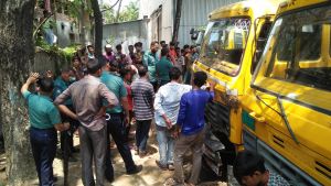 ঘুমান্ত হেলপারের উপর কাভার্ডভ্যান তুলে দিলেন চালক