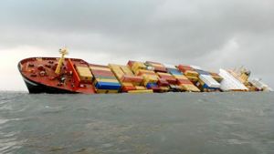 হাতিয়া চ্যানেলে জাহাজ থেকে ছিটকে পড়ল ৪৩ কন্টেইনার