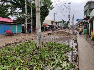 মাঝখানে খুঁটি রেখেই চলছে সড়ক সংস্কার