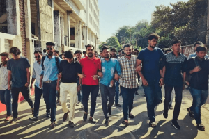হাসিনা মহিউদ্দিনকে সভামঞ্চ থেকে নামানোর প্রতিবাদে ইউএসটিসি ছাত্রলীগের বিক্ষোভ মিছিল