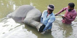 লামায় লেকের কাদা পানিতে ডুবে বন্য হাতির মৃত্যু