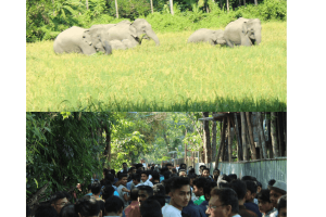 বোয়ালখালীতে লোকালয়ে হাতির পাল, উৎসুক জনতার ভীড়