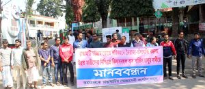 রাঙামাটিতে পরিবহণ সেক্টরে নৈরাজ্য ও চাঁদাবাজি বন্ধে বিভিন্ন সংগঠনের মানববন্ধন