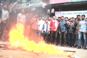 নগরীতে টায়ার জ্বালিয়ে ছাত্রলীগের সড়ক অবরোধ