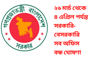সরকারি-বেসরকারি সব অফিস বন্ধ ঘোষণা
