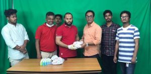 বাংলাধারায় কর্মরত সংবাদকর্মীদের মাস্ক ও হ্যান্ড স্যানিটাইজার বিতরণ করলেন রিন্টু