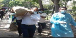 কাঁধে বস্তা নিয়ে হতদরিদ্রের ঘরে ঘরে জেলা প্রশাসক