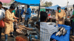 ইসকন মন্দিরে খাদ্যদ্রব্য বিতরণ করলেন রেজাউল করিম চৌধুরী