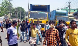 যান চলাচলে অনুমতির দাবিতে শ্রমিকদের বিক্ষোভ
