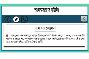 ক্ষমা চেয়ে আনন্দবাজার পত্রিকার ‘ভ্রম সংশোধন’