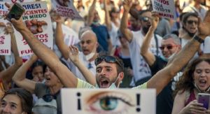 মাদ্রিদে মাস্কবিরোধী বিক্ষোভ