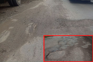 খানাখন্দে ভরা লোহাগাড়া মহাসড়কে ঝুঁকি নিয়ে চলাচল