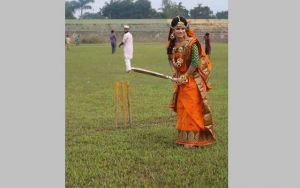 স্টেডিয়ামে হলুদের সাজে সানজিদার ব্যাটিং