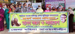 বঙ্গবন্ধুর ভাস্কর্য ভাঙার প্রতিবাদে রাঙামাটি মহিলা আওয়ামীলীগের মানববন্ধ