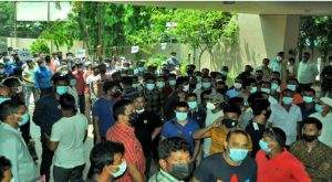 ফ্লাইট চালুর দাবিতে চট্টগ্রামে বিমান অফিসের সামনে প্রবাসীদের বিক্ষোভ