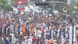 মন্দির-মণ্ডপে হামলার প্রতিবাদে শাহবাগ অবরোধ