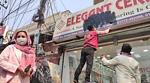 ইংরেজি সাইনবোর্ডে কালি লাগাচ্ছে চসিক