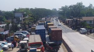 বিটুমিন ঢালাইয়ের কাজের কারণে ১২ কি.মি. যানজট