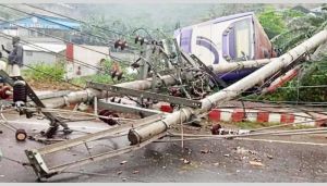 বায়েজিদে পথচারীকে চাপা দিয়ে বাস খাদে
