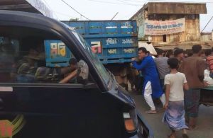 রাস্তায় বিকল ট্রাক ঠেলে যানজট মুক্ত করলেন বাঁশখালীর মেয়র