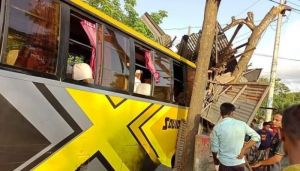 লোহাগাড়ায় নিয়ন্ত্রণ হারিয়ে চলন্ত বাস ঢুকে গেল দোকানে