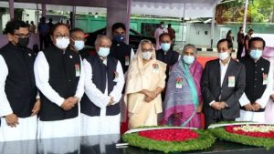 বঙ্গবন্ধুর প্রতিকৃতিতে প্রধানমন্ত্রীর শ্রদ্ধা