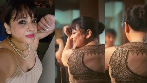 খোলা পিঠে মেহেদি দিয়ে ব্লাউজ আঁকলেন শ্রীলেখা